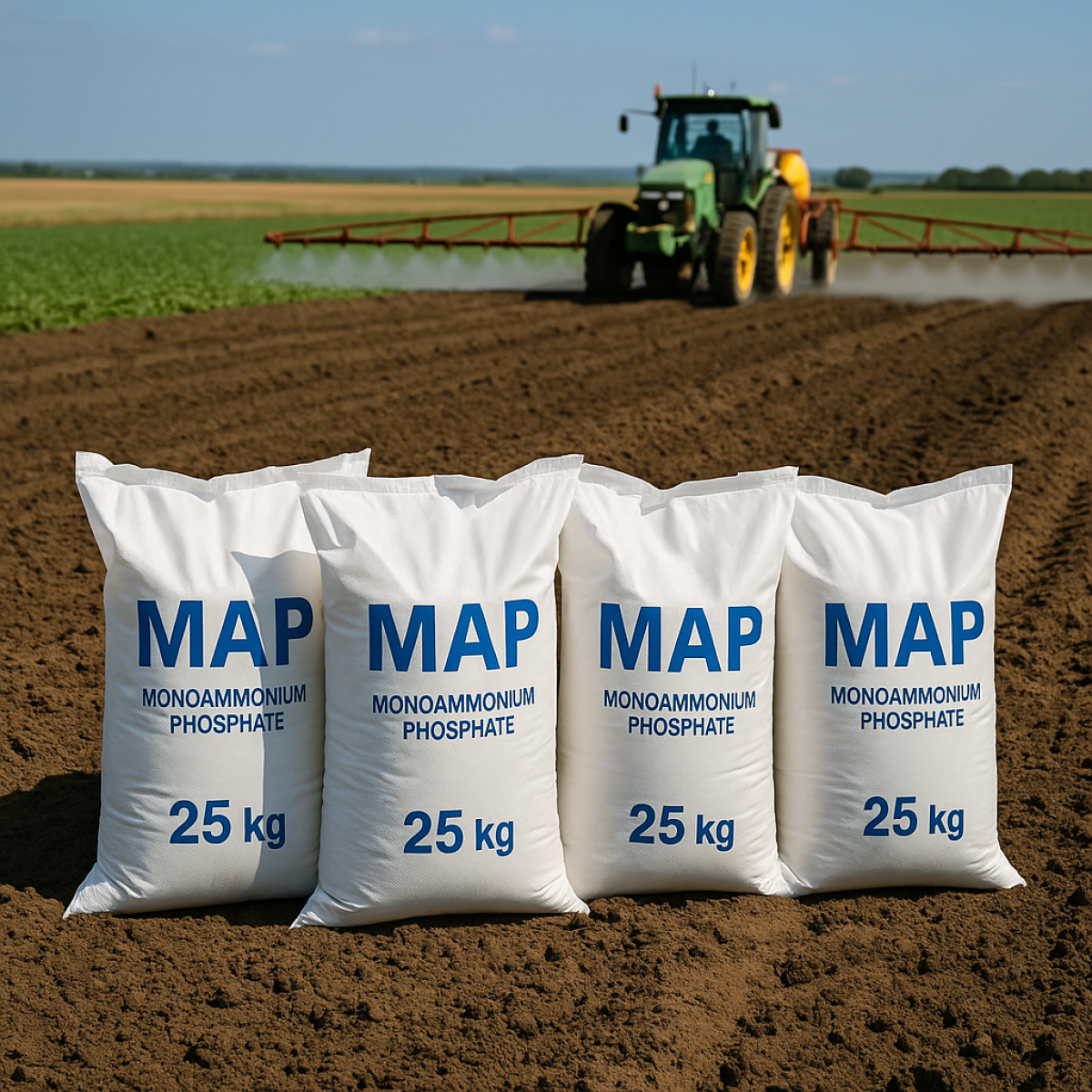 Моноамонійфосфат (MAP) 25 кг: швидкорозчинне добриво з високим вмістом фосфору (P₂O₅ 48–61 %) та азоту. Ідеальне для передпосівного підживлення та поливних систем. Доставка по Україні.